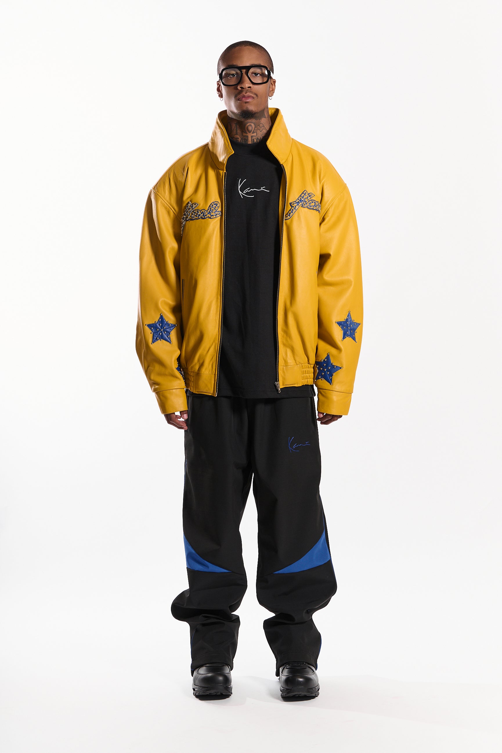 Accented with starlit azure blue patches with stud detailing, it exudes an unmistakable edge. Designed with a full-zip front, elasticated hem, two front slip pockets, and a photo-print lining for a bold, contemporary finish.