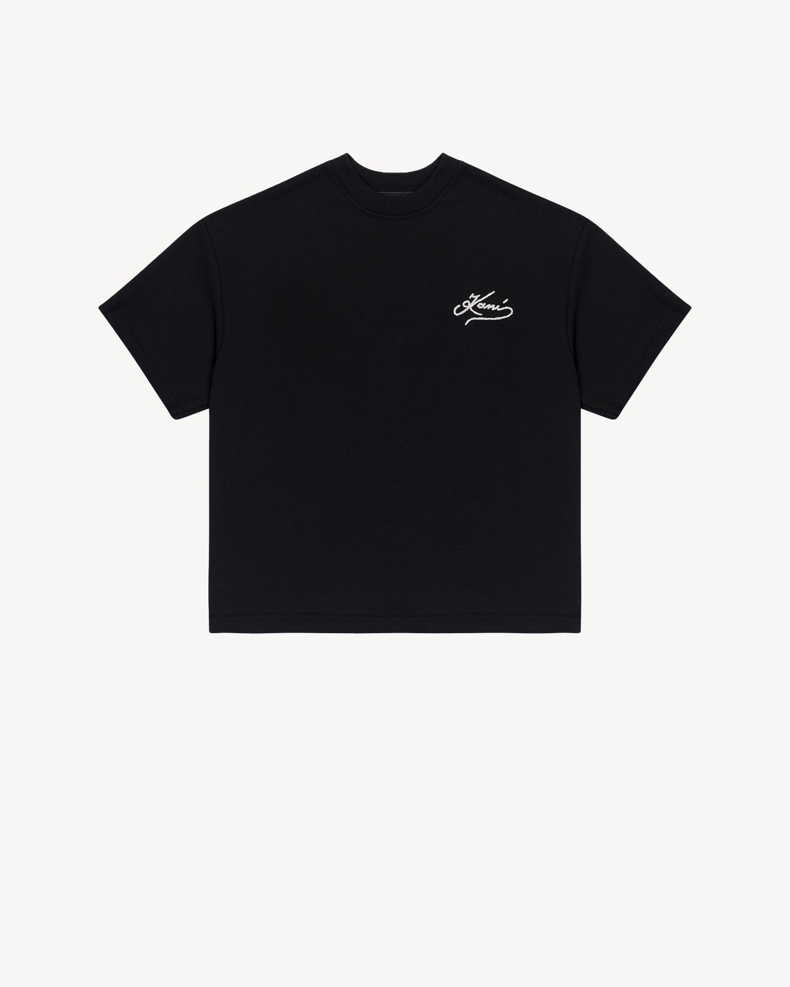 Featuring a hand-stitched braided embroidery at the chest, this noir black tee delivers a clean, versatile streetwear look built to last.