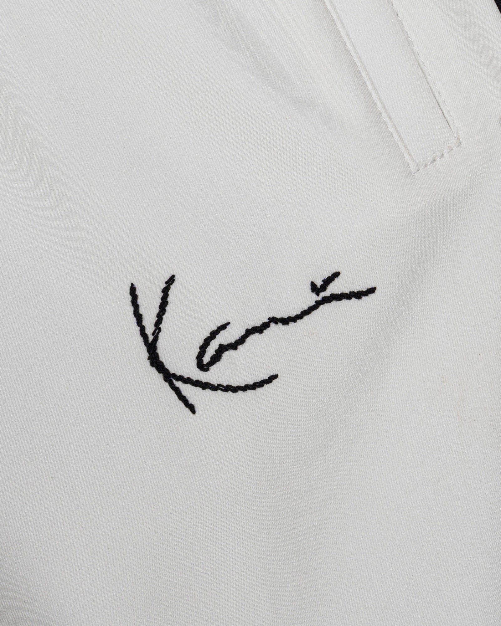 Featuring an elastic waistband with an adjustable fit, side pockets, and straight-leg silhouette for a clean, athletic look. The crisp cloud whisper white base is accented by bold black noir geometric panels and hand stitched Kani logo embroidery, delivering a statement-making contrast that stands out.