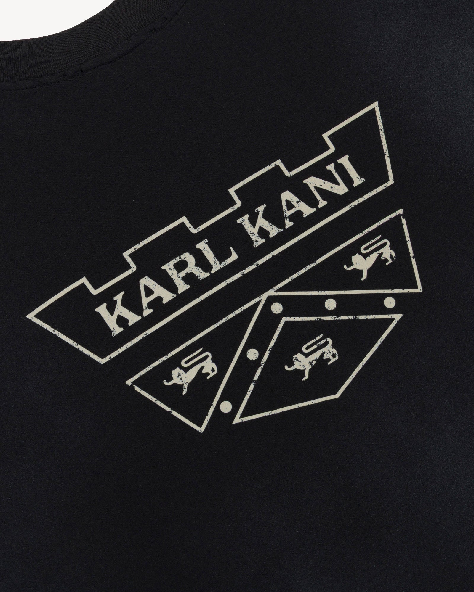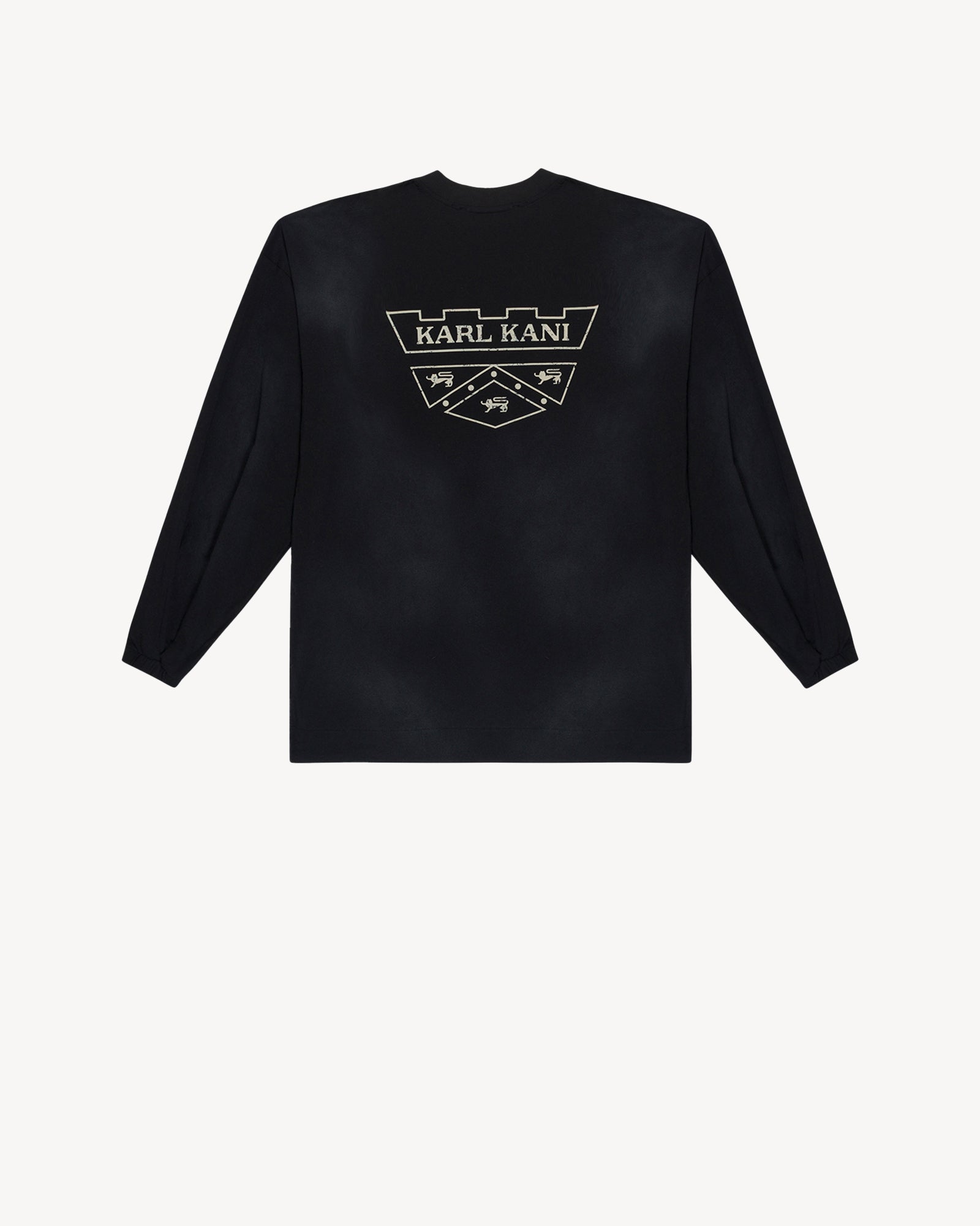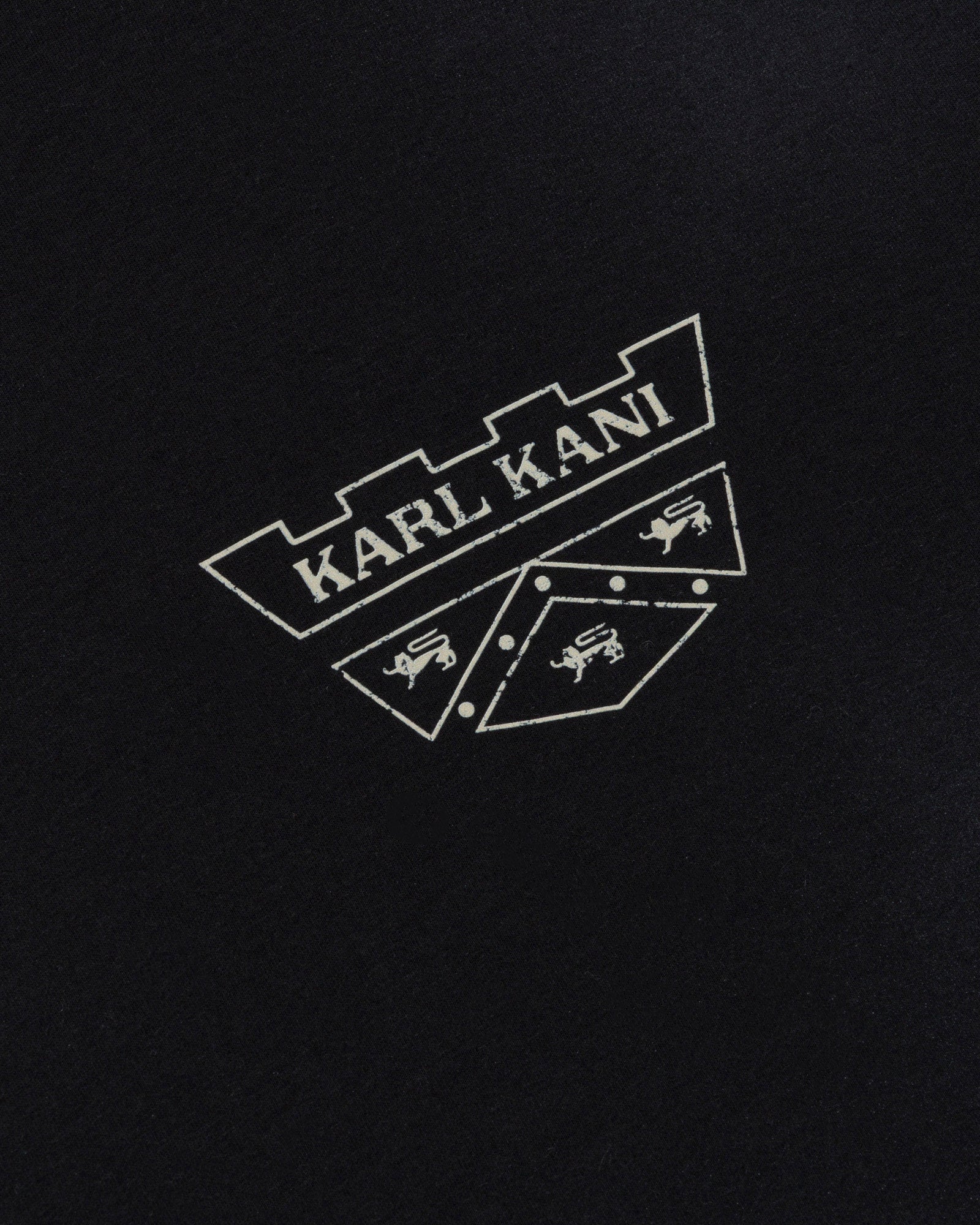 Featuring a bold Karl Kani crest graphic printed on the chest and back, it delivers a sleek, urban edge. The classic crew neckline and elasticated cuffs make it a versatile wardrobe staple, perfect for layering or wearing solo.