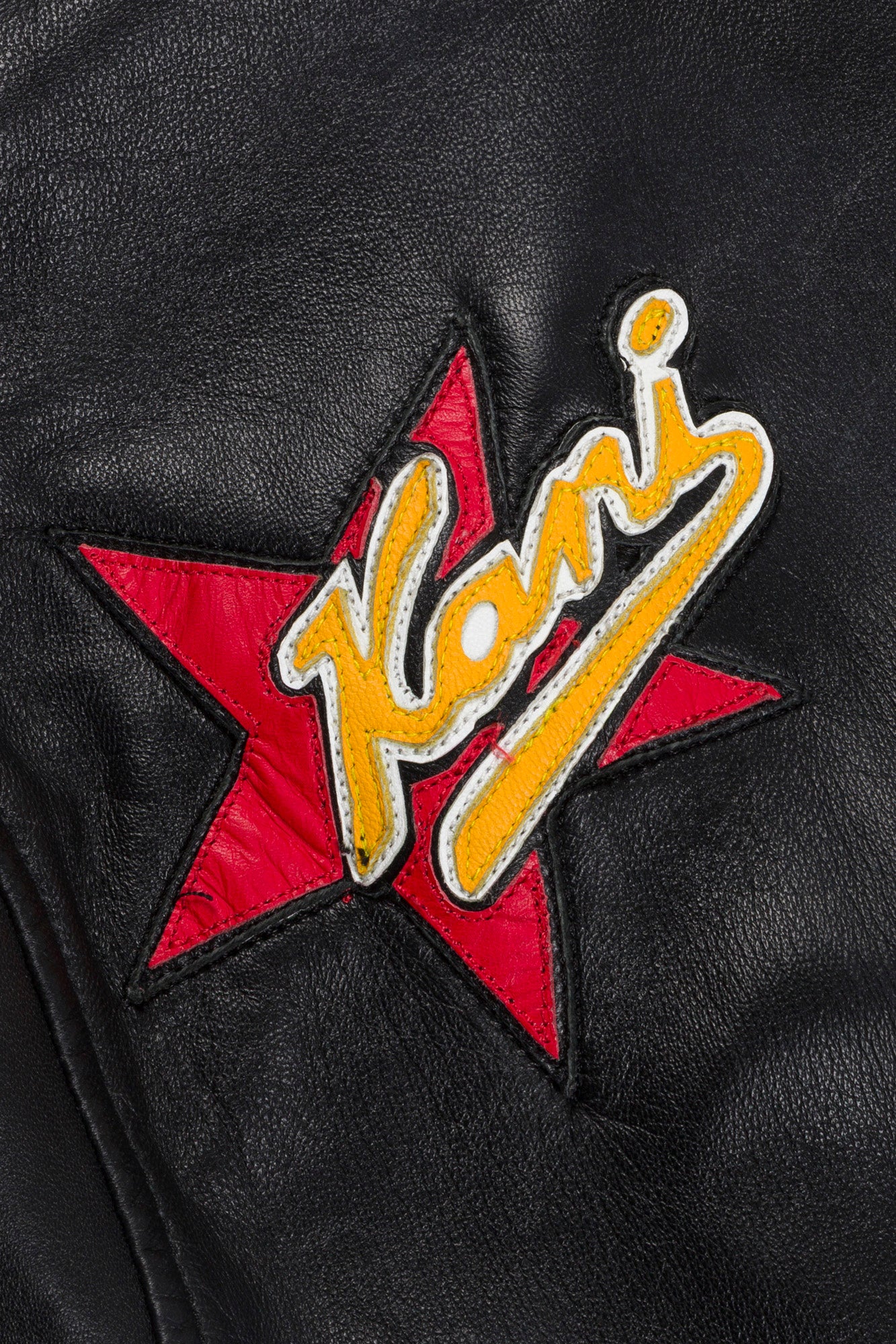 The “Cross Keys” jacket is crafted from premium sheepskin leather, featuring custom Kani hand sewn logo patch detailing on front, sleeves, and back. Jacket includes twin front zip pockets, and a reversible photo print lining.