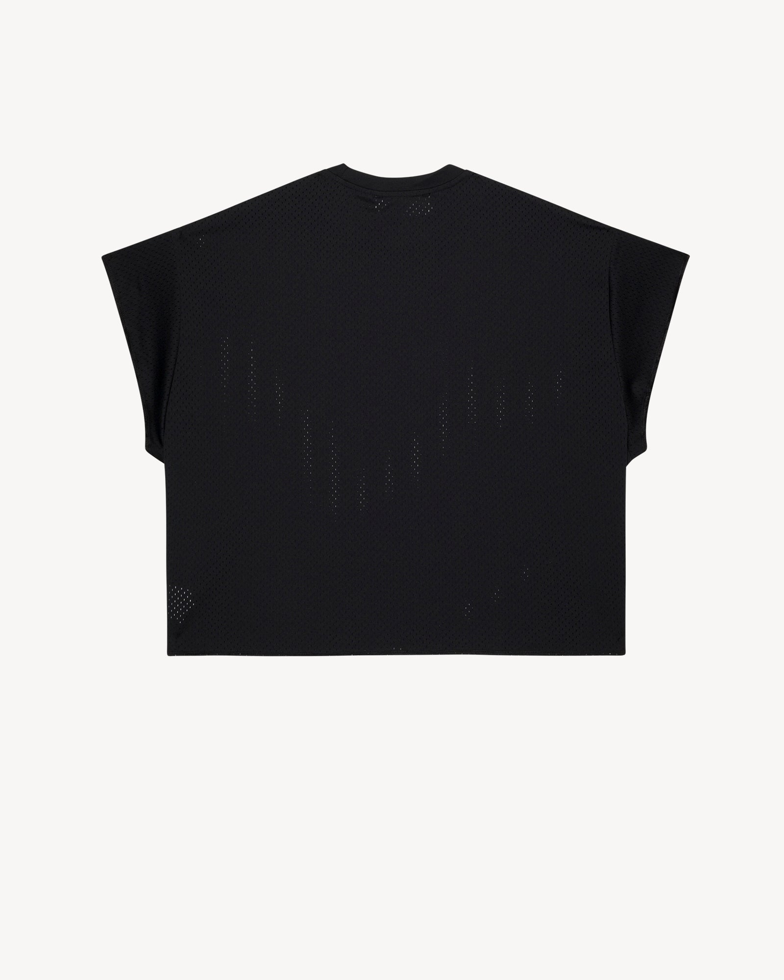 The “Dribble” mesh tee in noir black made from premium 220 GSM mesh fabric combines lightweight breathability with a modern athletic silhouette. Designed with a sleeveless fit, ribbed crew neckline, and clean minimal lines, this top delivers sportswear performance with a streetwear edge.