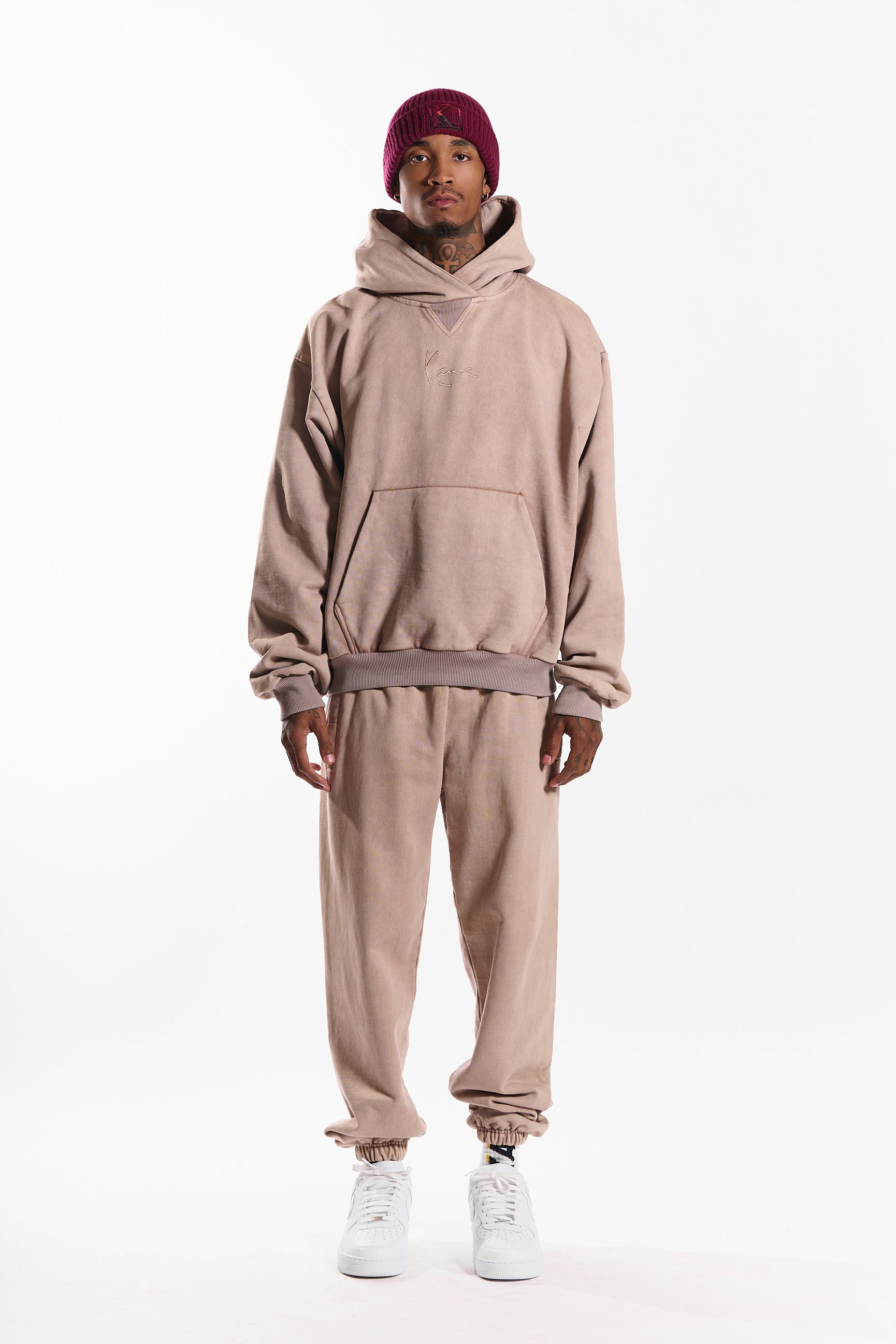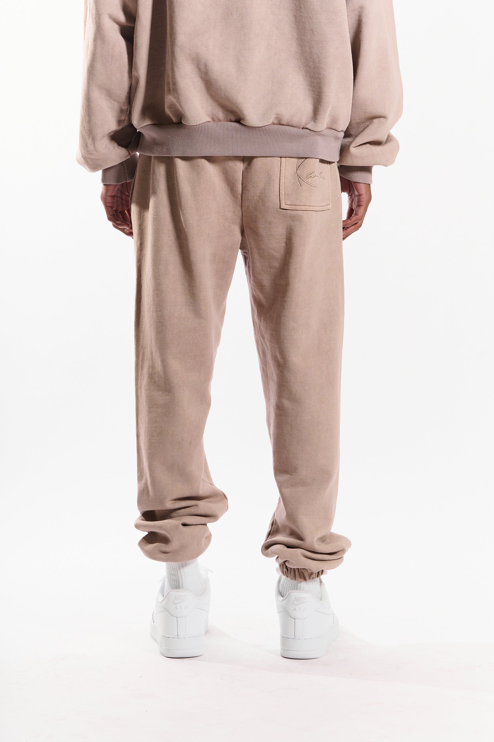 Designed with a relaxed fit, elastic waistband with drawcord, and elastic cuffs, they provide all-day ease and a clean, tapered look. Finished with a tonal embroidered Kani signature on the rear patch pocket.