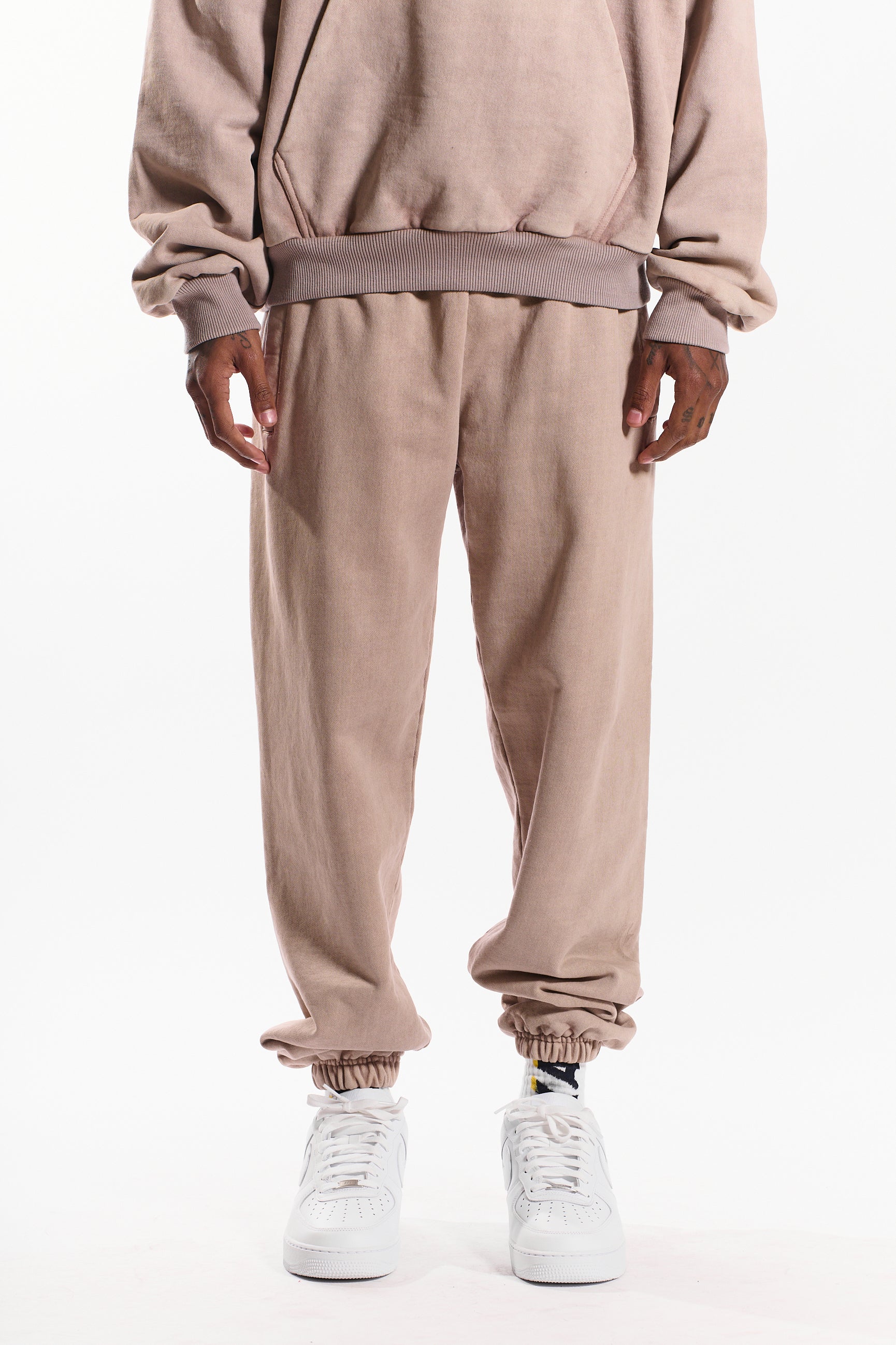 The “Field Goal” Joggers deliver premium comfort and lasting durability, crafted from 500 GSM heavyweight terry cotton in a versatile sandstone beige colorway.