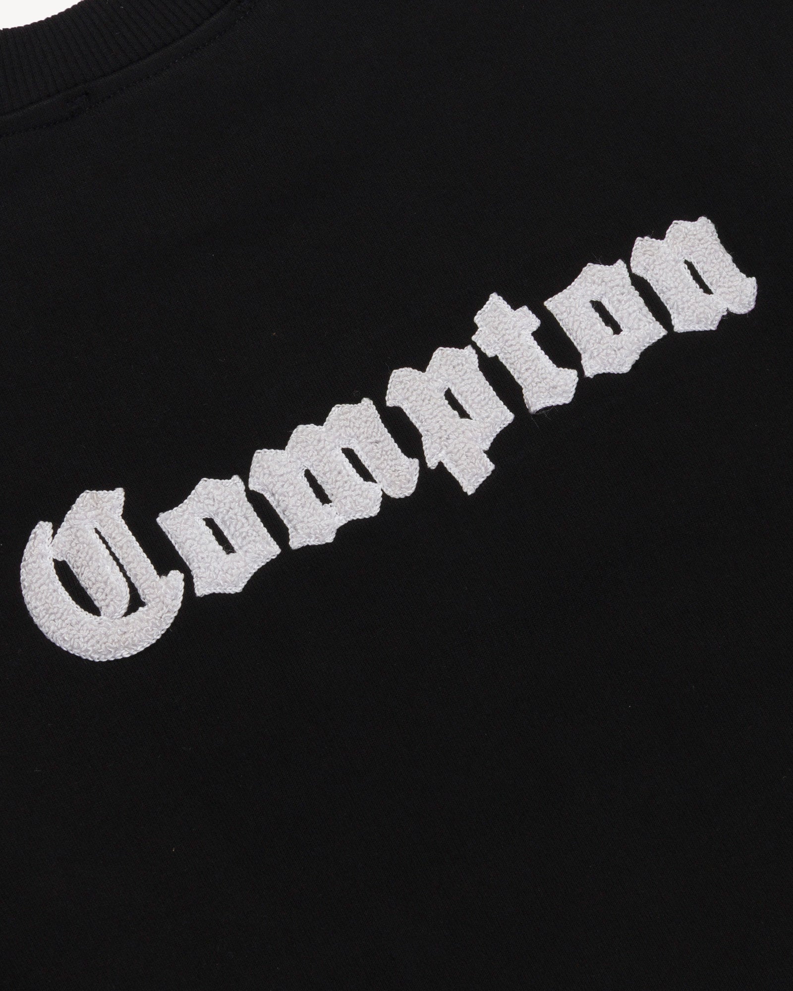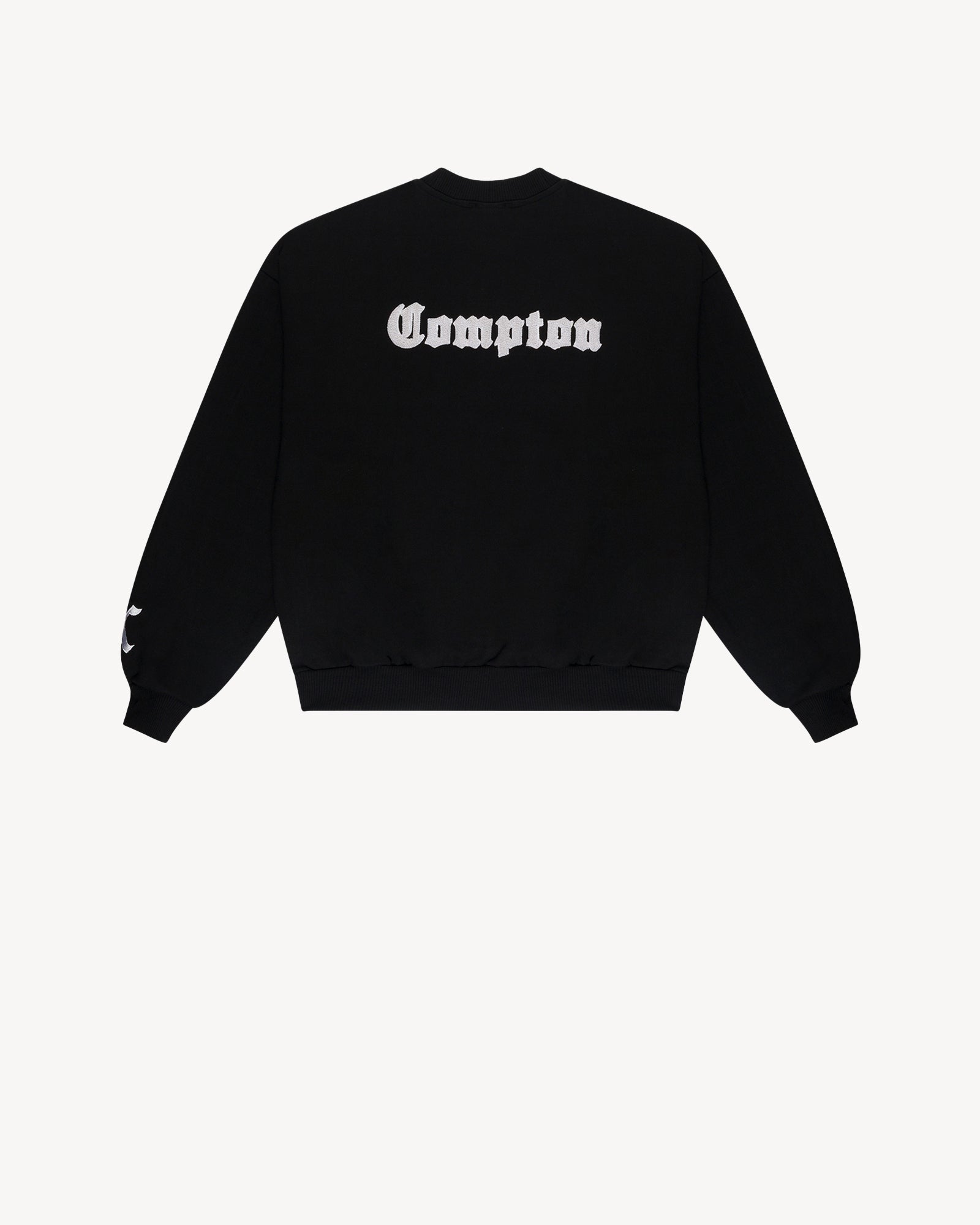 Featuring old english inspired embroidered artwork on front, back, and sleeve, this heavyweight 500 GSM cotton fleece crewneck is finished with a relaxed, oversized fit, ribbed cuffs, and hem.