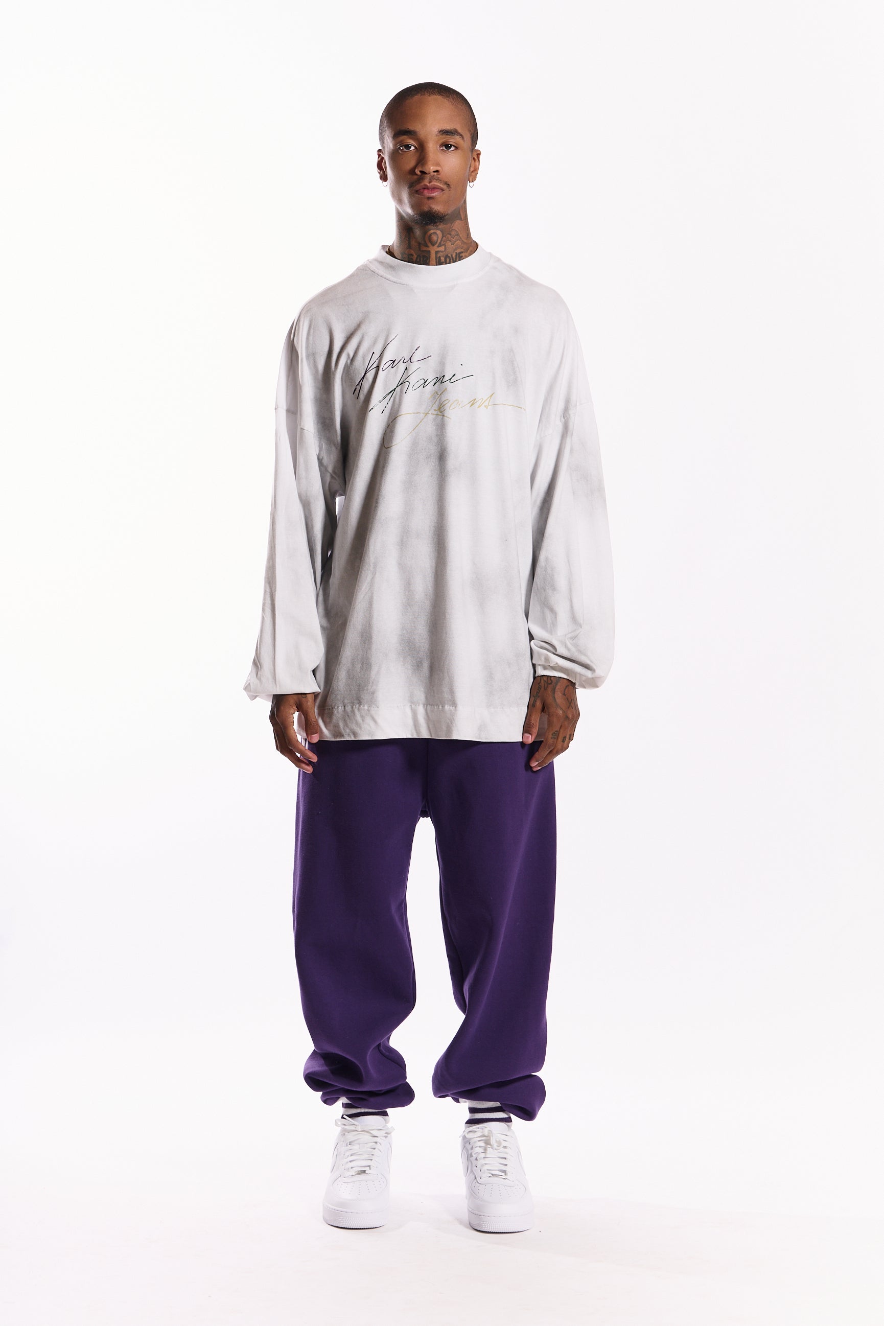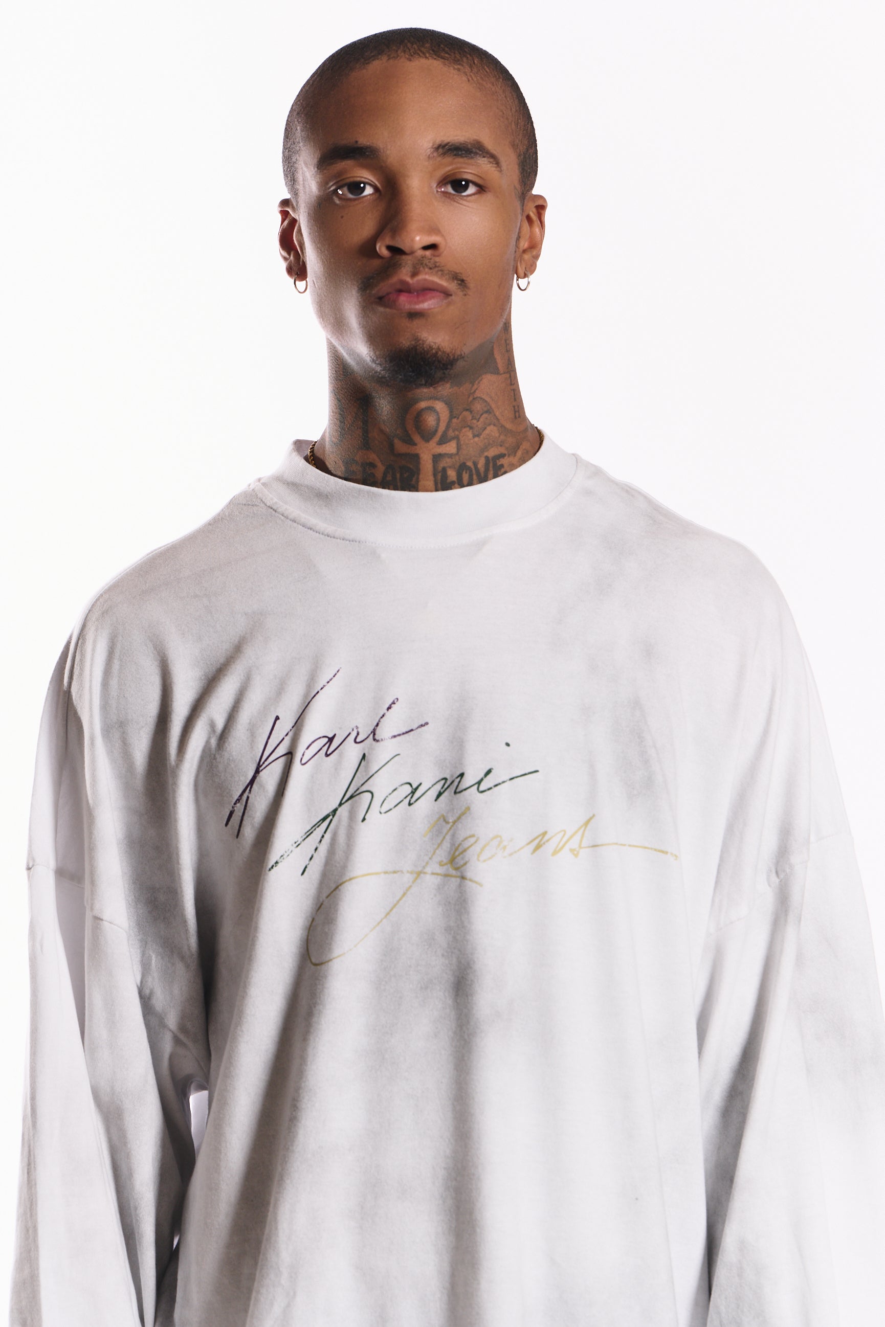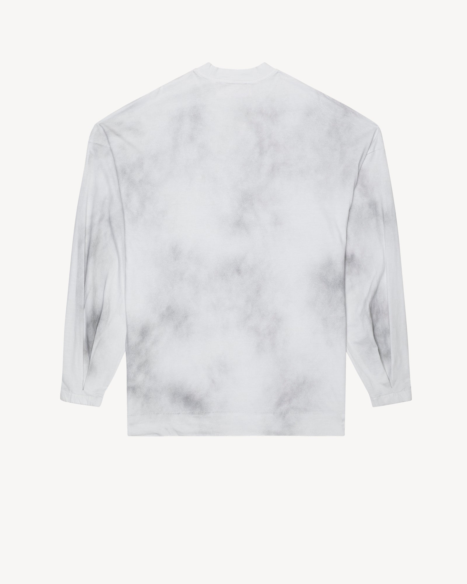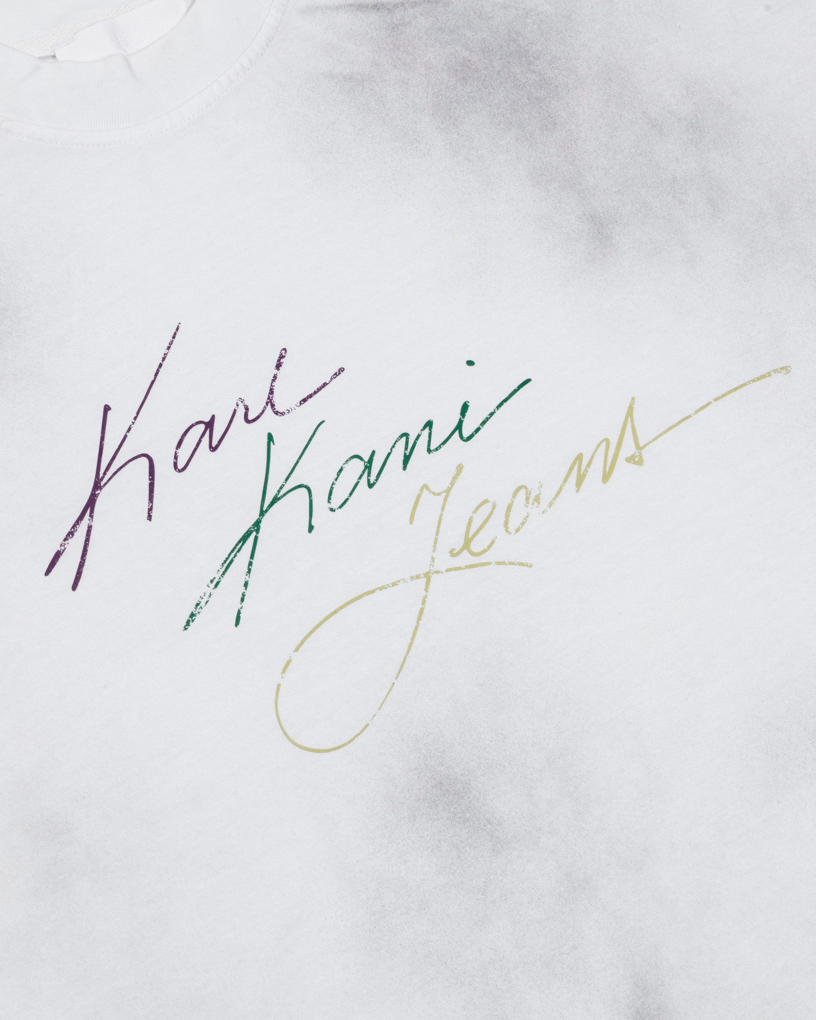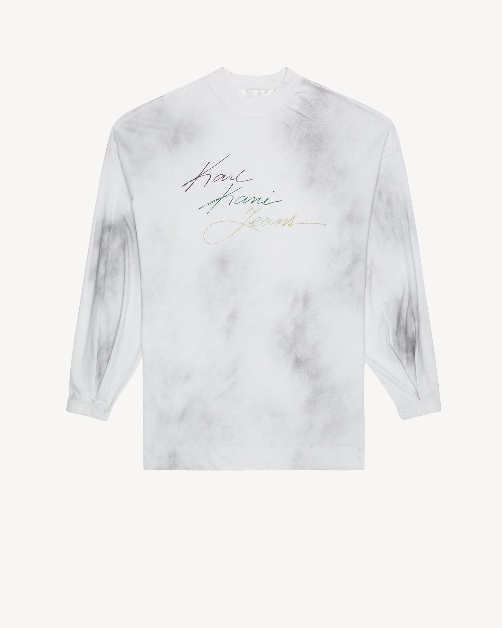 The “Time Lapse” long sleeve tee features a soft cloud-dye wash in cloud whisper white, giving each piece a unique finish. Made from premium cotton jersey, it offers a relaxed fit with ribbed cuffs for everyday comfort. The gradient Karl Kani Jeans logo across the chest completes the look with a signature touch of timeless authenticity.