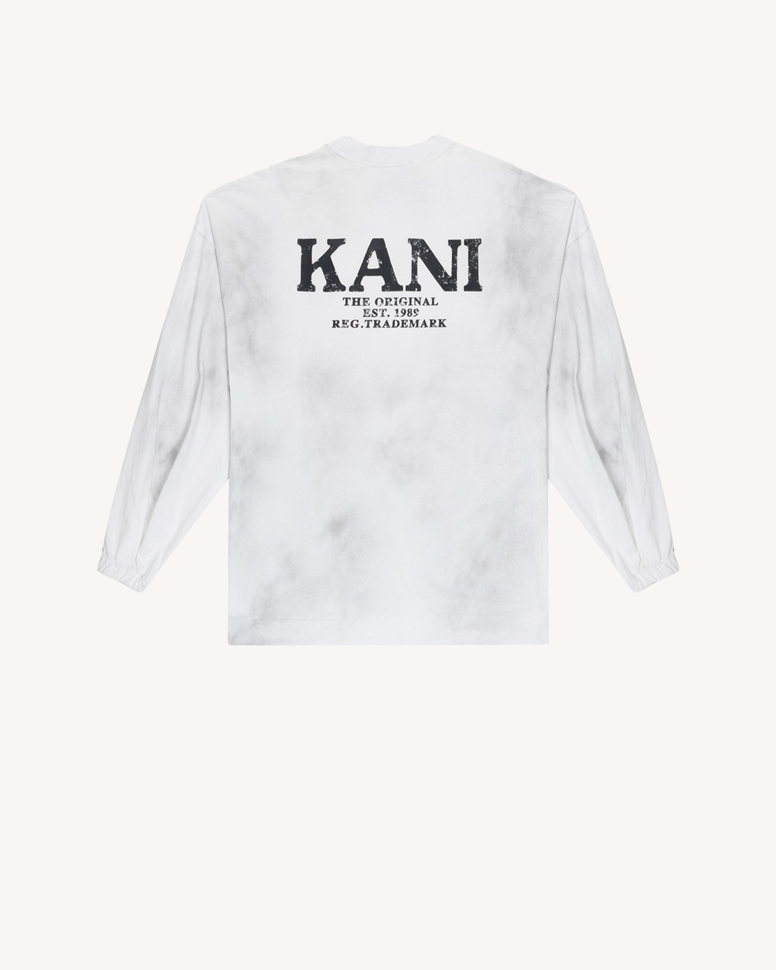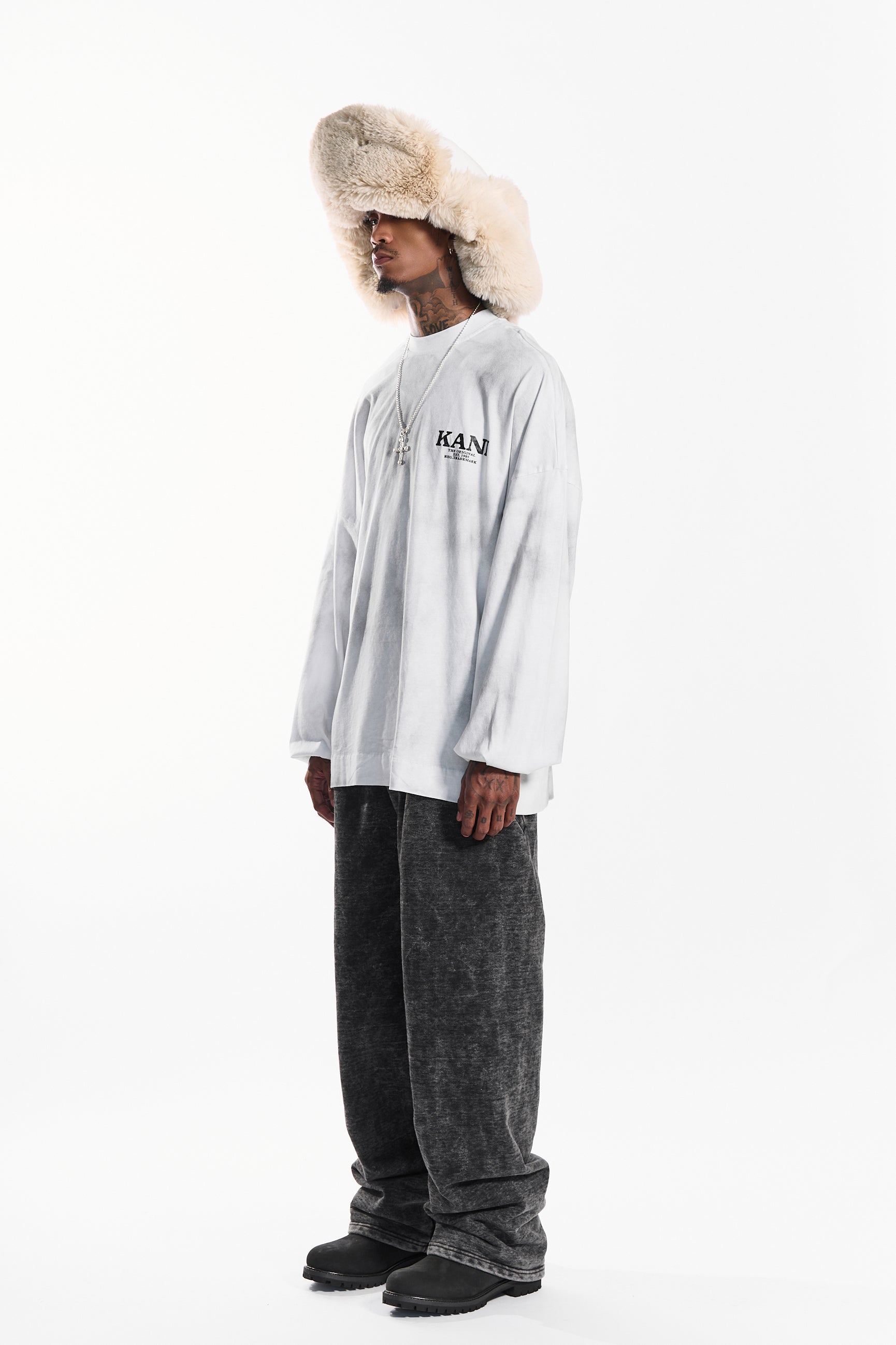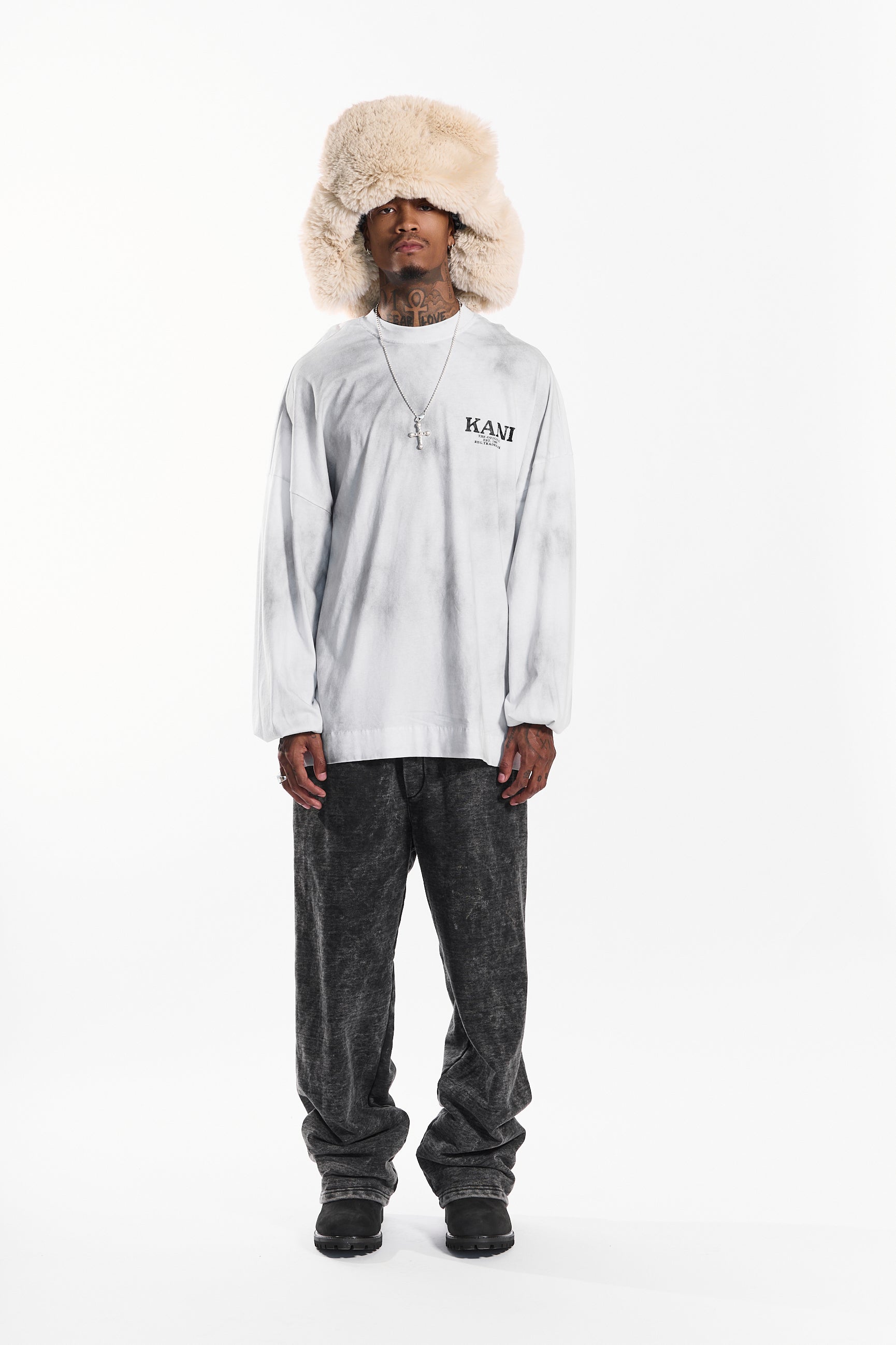 - Color: Cloud Whisper White with cloud-dyed pattern Fabric: 150 GSM 100% cotton jersey Kani graphics on front and back Relaxed fit Long sleeves with elasticated cuffs