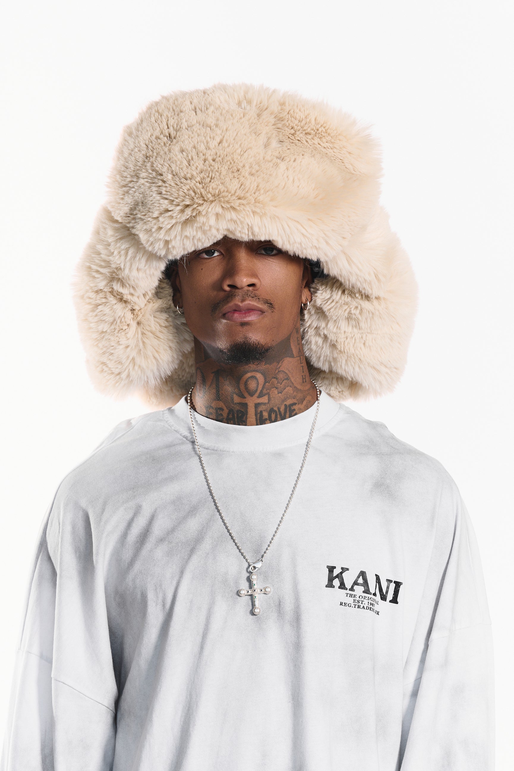 Made from 150 GSM 100% cotton jersey with a relaxed fit, elasticated cuffs, and features Kani graphics on the chest and the back with subtle cloud-dyed finish adds a modern twist to the classic white base.