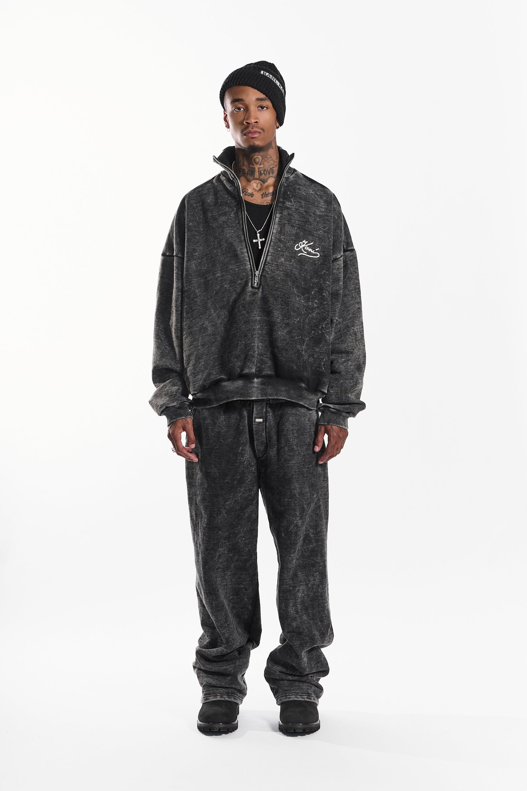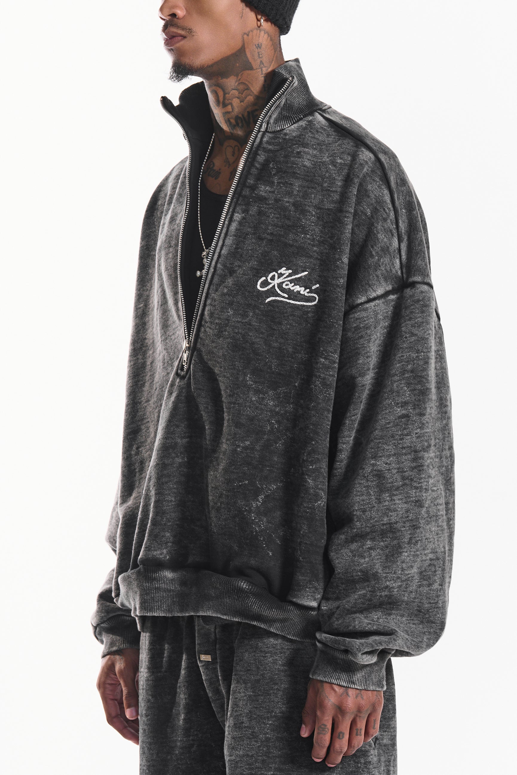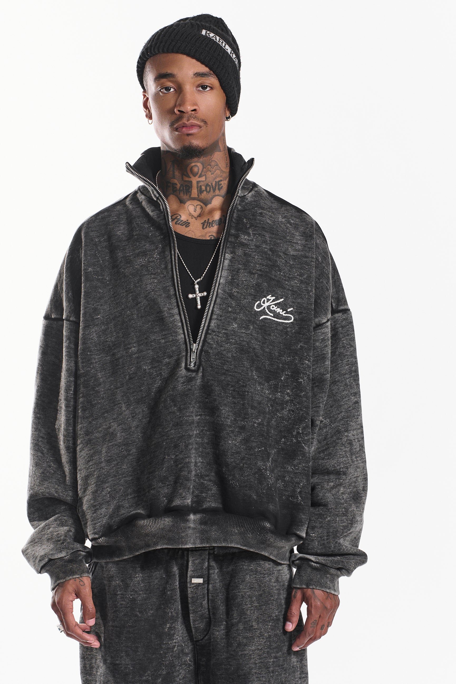 The “Rema” vintage wash half-zip pullover is made from soft, premium french terry, delivering both comfort and street-style edge. Featuring a hand stitched embroidered logo detail on the chest, ribbed cuffs and hem.
