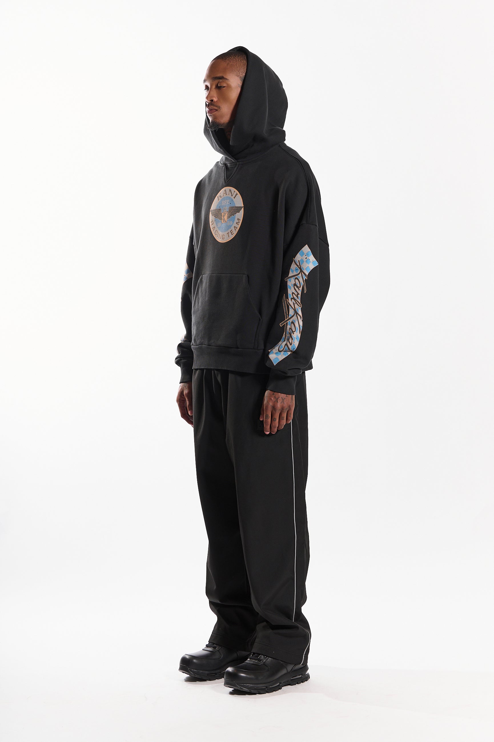The “Rev” hoodie in noir black brings motorsport energy to everyday streetwear.