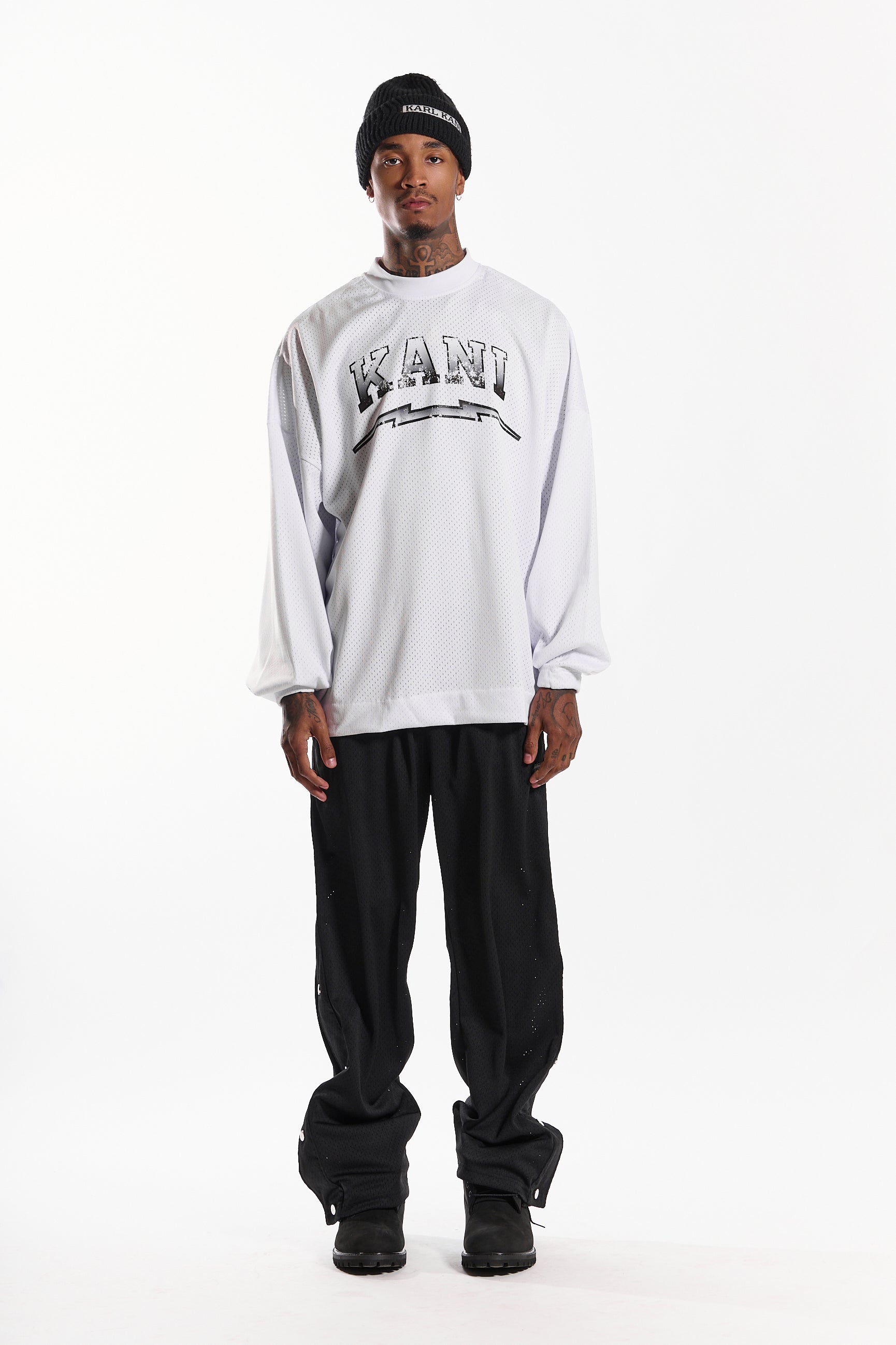 Crafted from breathable polyester mesh fabric, it delivers all-day ease and a relaxed fit. Features a bold KANI graphic print across the chest for a statement look.