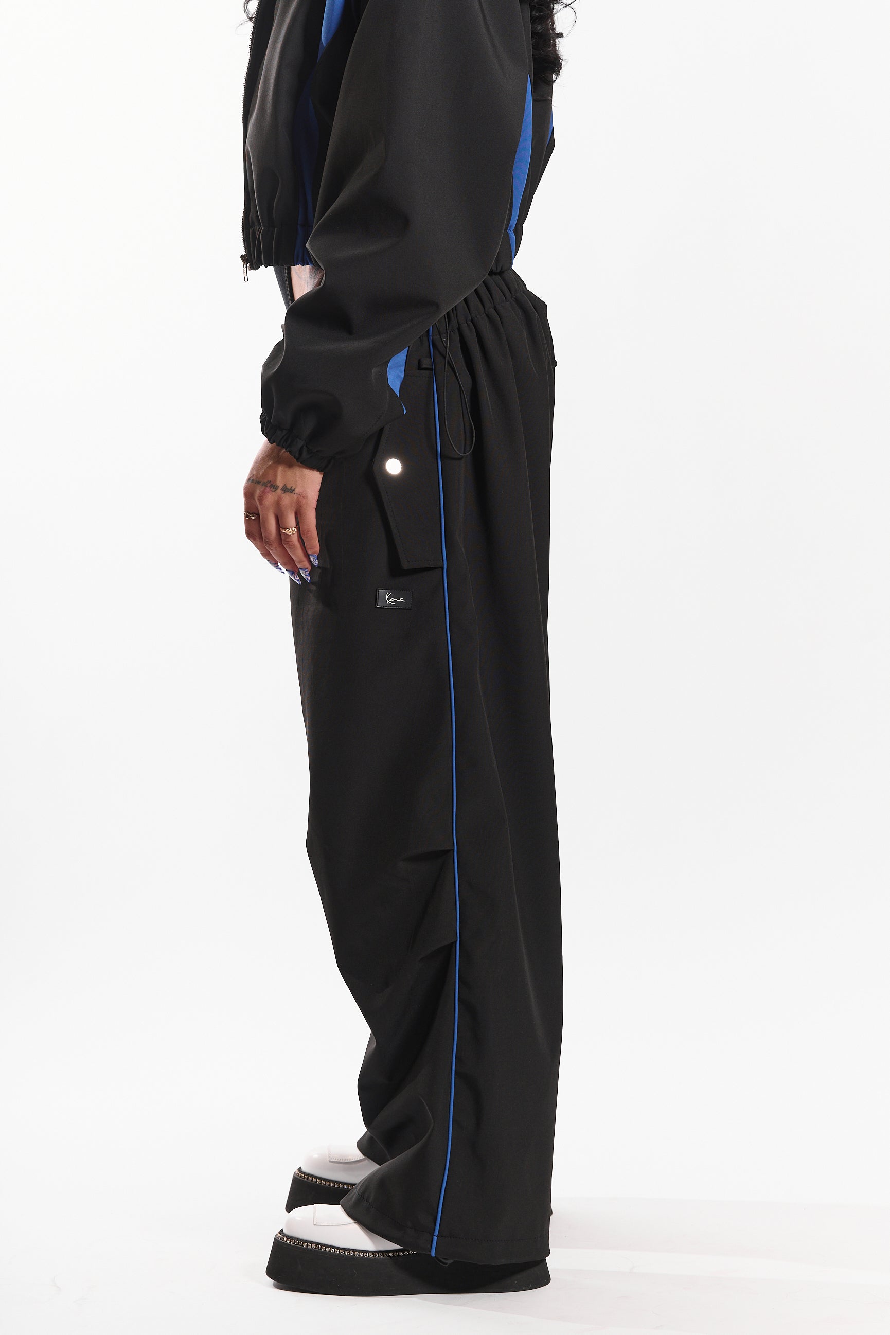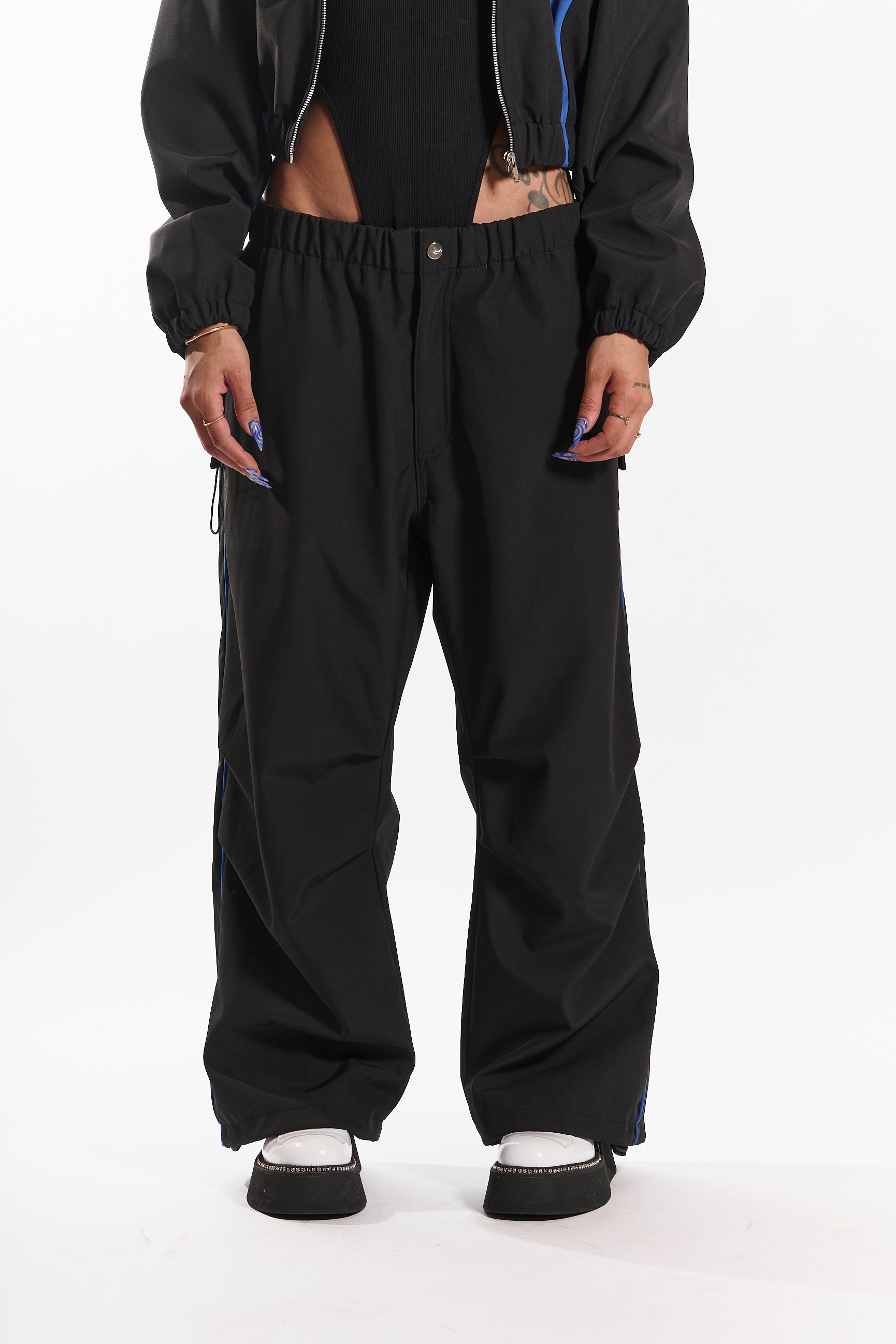 The “Street Thing” pants in noir black with royal contrast combine sleek streetwear aesthetics with all-day comfort.