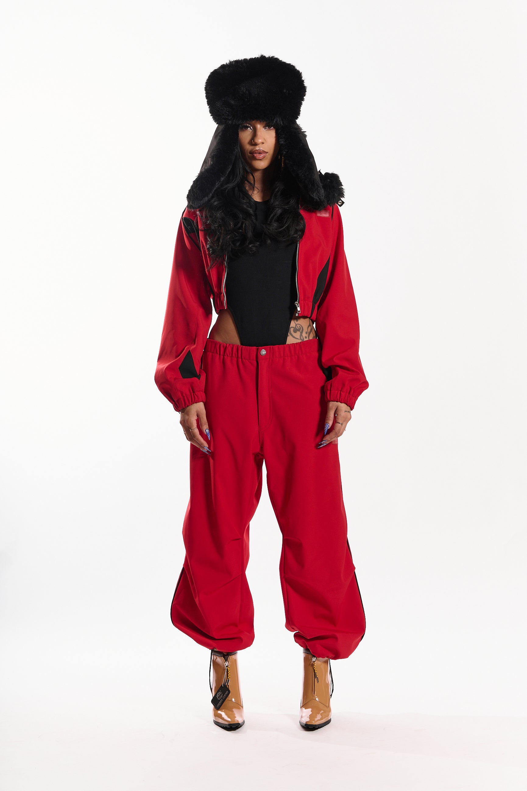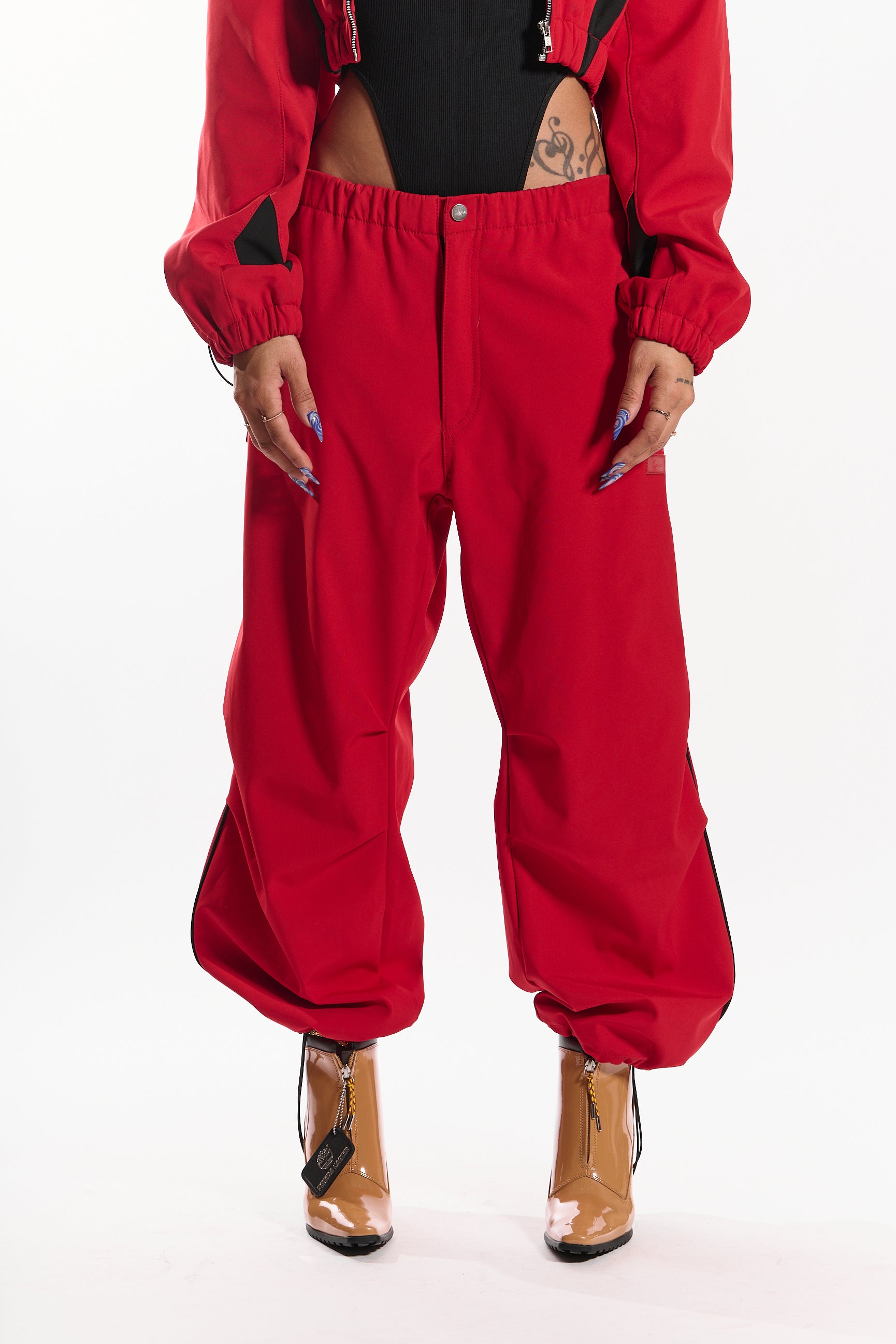 The “Street Thing” pants in red combine sleek streetwear aesthetics with all-day comfort.