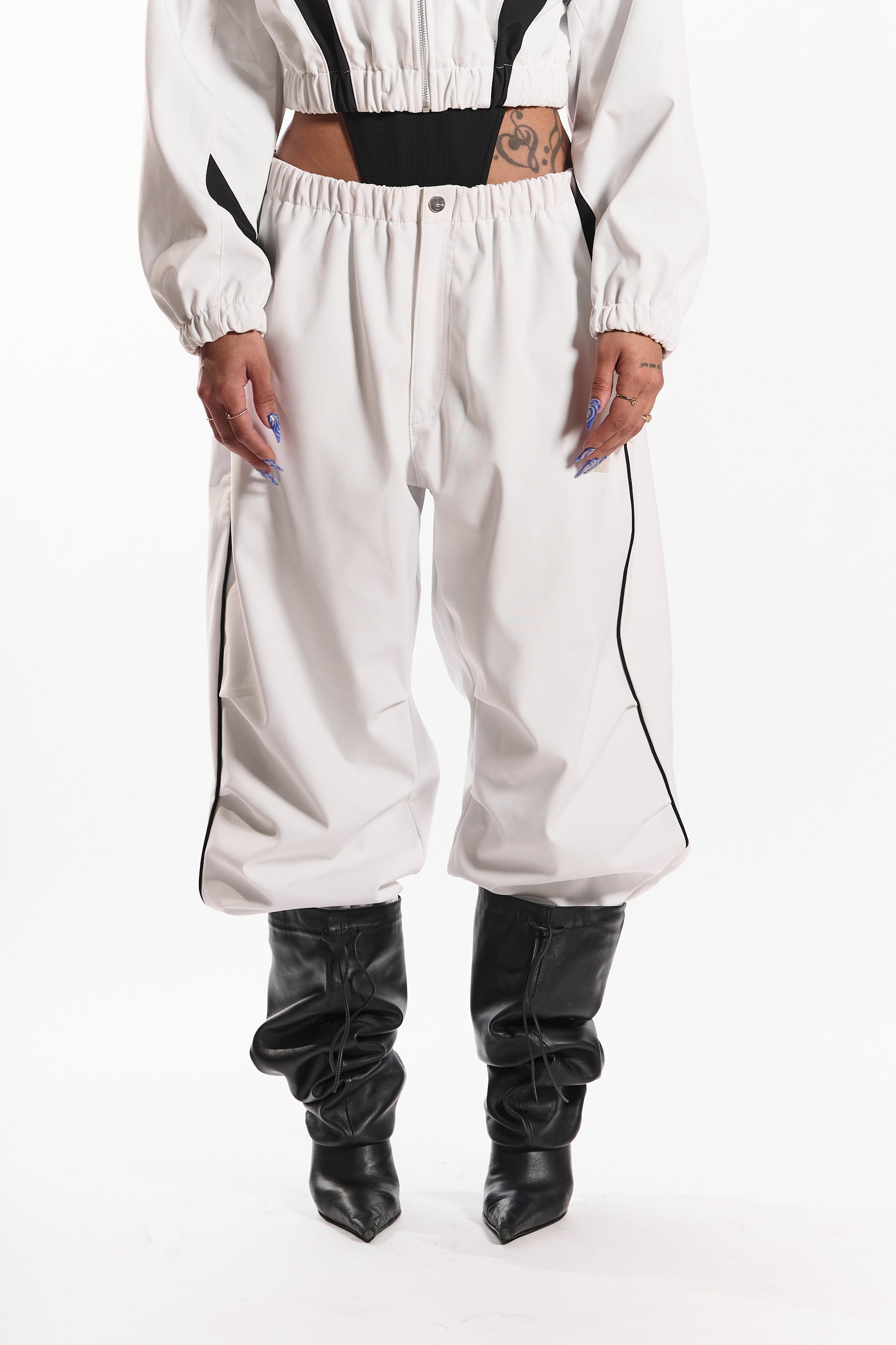 The “Street Thing” pants in cloud whisper white combine sleek streetwear aesthetics with all-day comfort.