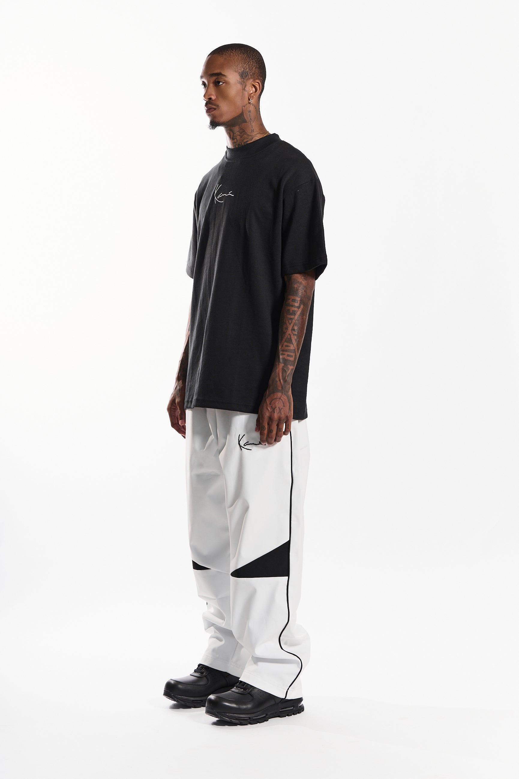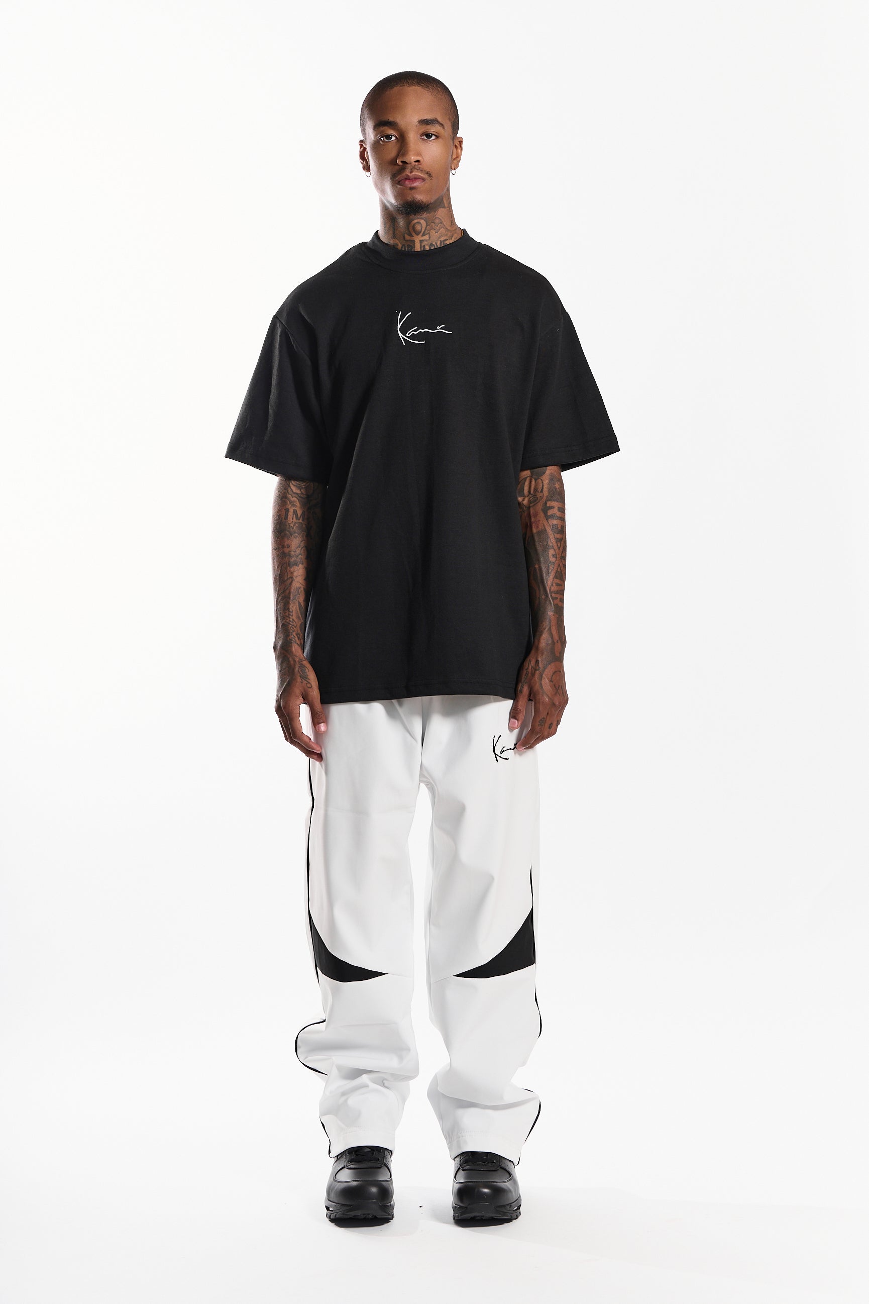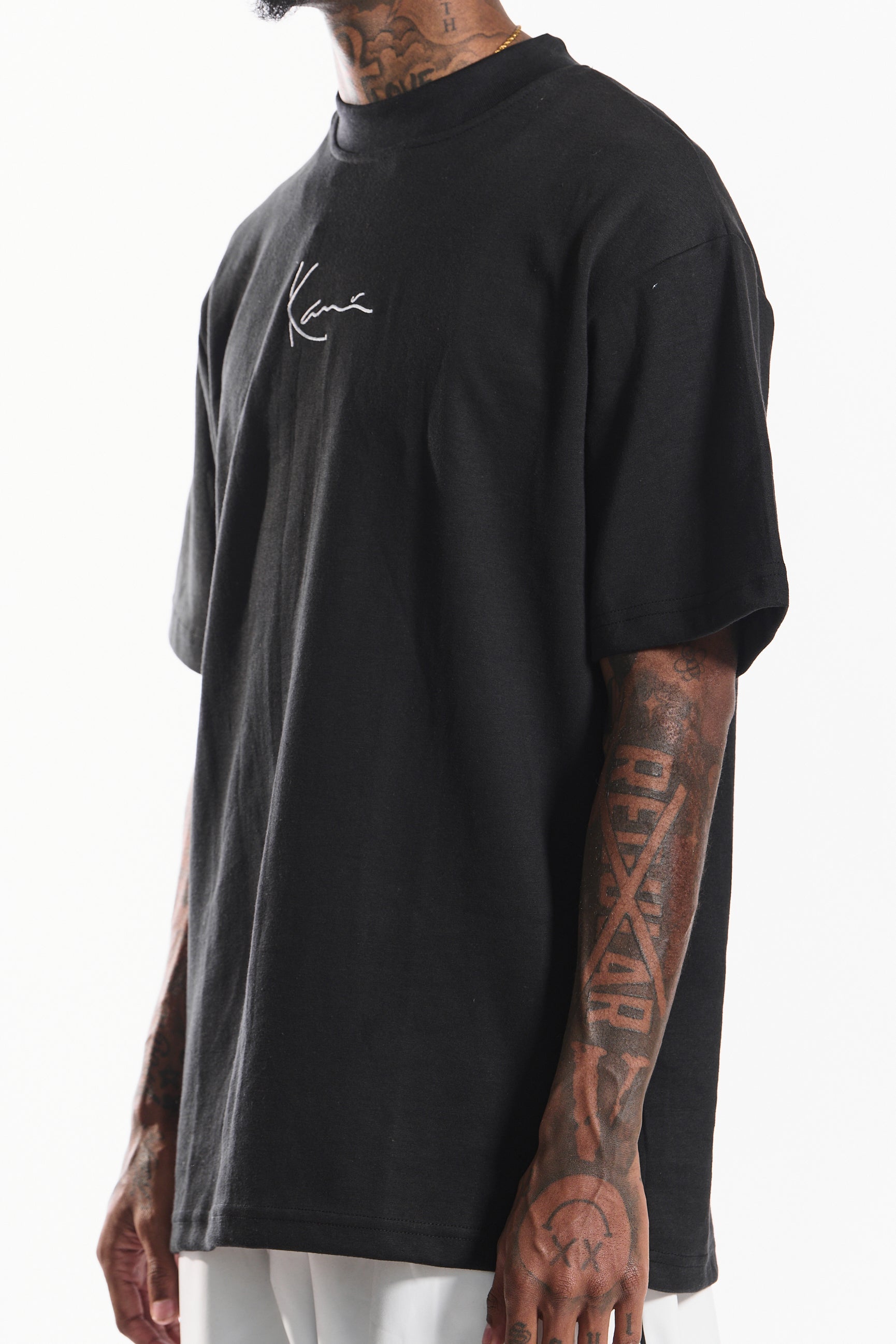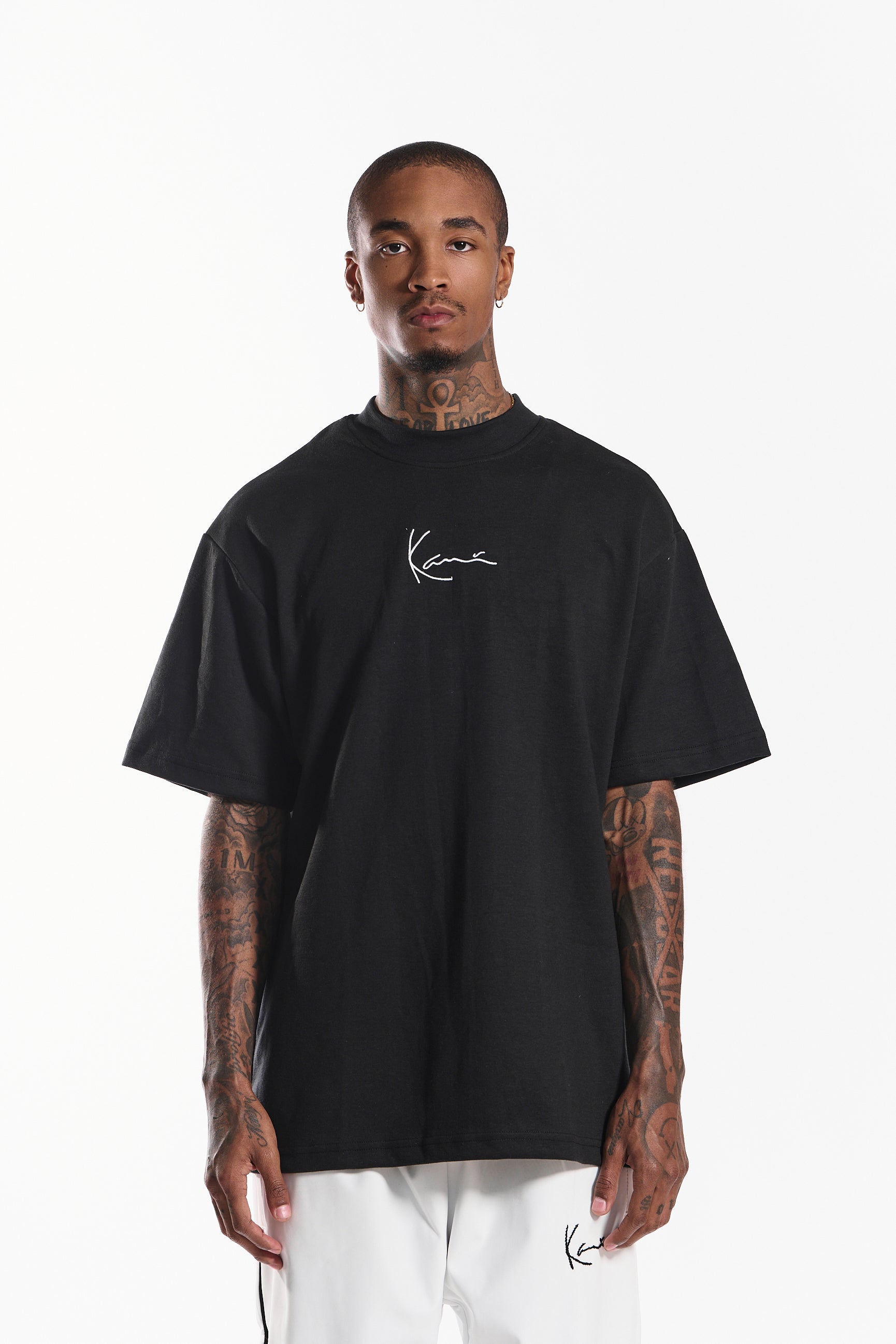 Crafted from a premium 80/20 cotton-poly jersey with 300 GSM weight, "The Alley-Oop” tee in timeless noir black delivers comfort for all-day wear. Featuring a minimalist embroidered signature logo on the chest, it blends urban edge with refined simplicity.