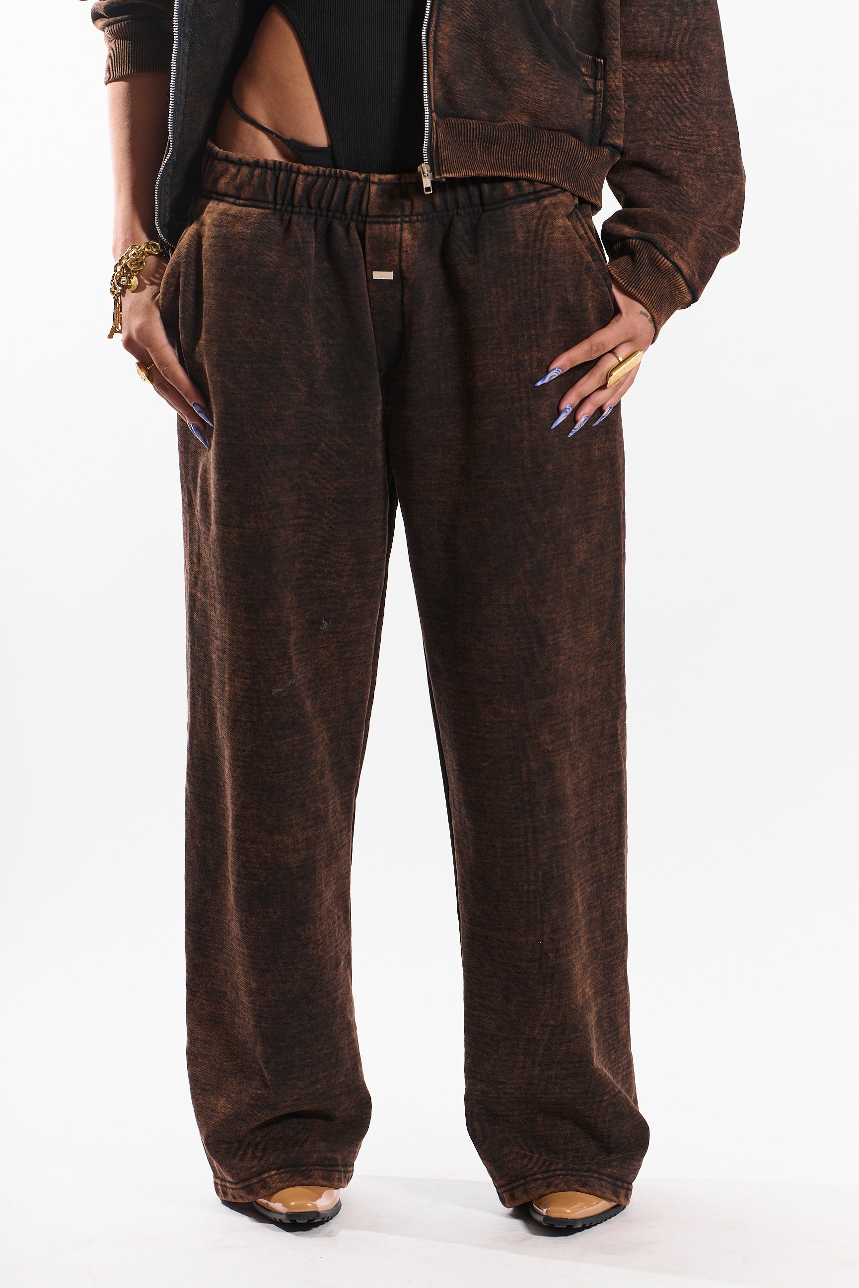 Designed for everyday wear, the “Trench Town” jogger is crafted from soft, premium French terry with a vintage wash brown finish. Featuring a relaxed wide-leg silhouette that moves with you, an elastic waistband for comfort, and twin side pockets for functionality.