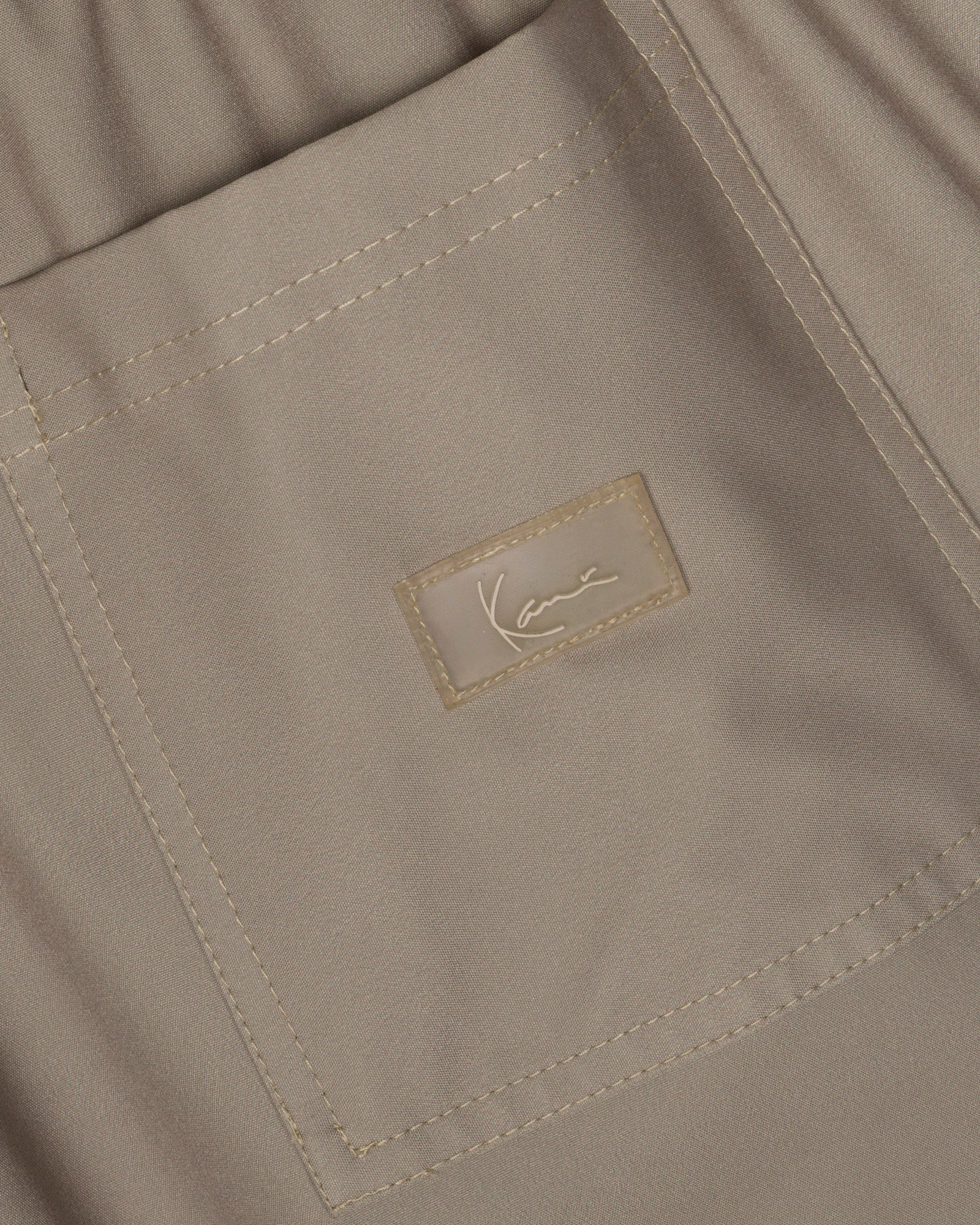 The “Utica” pants in sandstone beige combine sleek streetwear style with functional comfort. Made from durable nylon softshell with a breathable mesh lining, they feature an elastic waistband for a secure fit, a straight-leg silhouette, and lightweight construction for all-day wear. Perfect for casual, active, or travel looks.